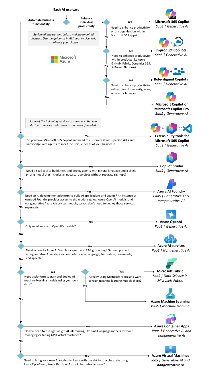 Información basada en la publicación oficial de Microsoft: «Microsoft AI decision tree«.