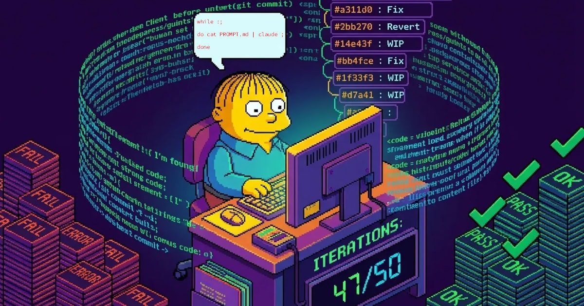Ralph Wiggum (técnica popularizada en la comunidad como “Ralph is a bash loop”) describe una idea simple: en vez de pedirle a un agente que haga una tarea y se detenga, lo metes en un bucle que le fuerza a iterar sobre el mismo objetivo, aprendiendo de sus fallos y de los cambios que él mismo va introduciendo en el repo.