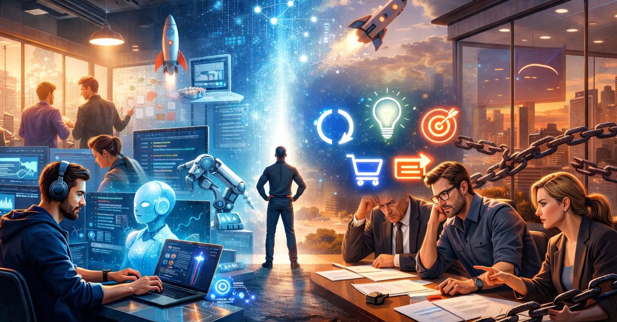 Mientras una gran empresa pasa seis meses evaluando herramientas de IA, una startup ya ha: